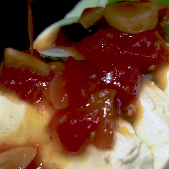 Ez egy igazán szokatlan készítmény – képzelj el egy darabos ketchupot, de sokkal mélyebb ízvilággal! A fokhagyma és a paradicsom darabjai kiemelik a szósz gazdag, édes-savanykás jellegét.